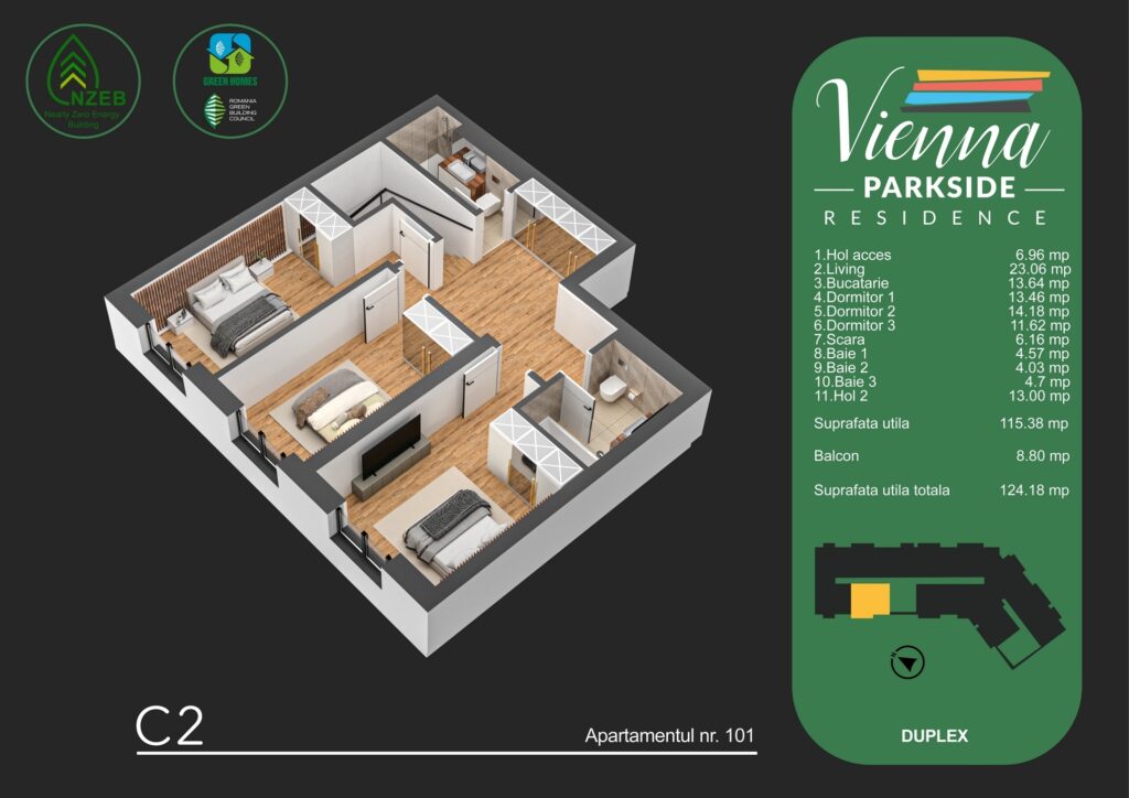 Vienna Parkside Residence este primul proiect din Metalurgiei Park Residence certificat GREEN HOMES, cu locuinte care respecta standardele nZEB (cladiri cu consum aproape zero de energie). Beneficii principale: