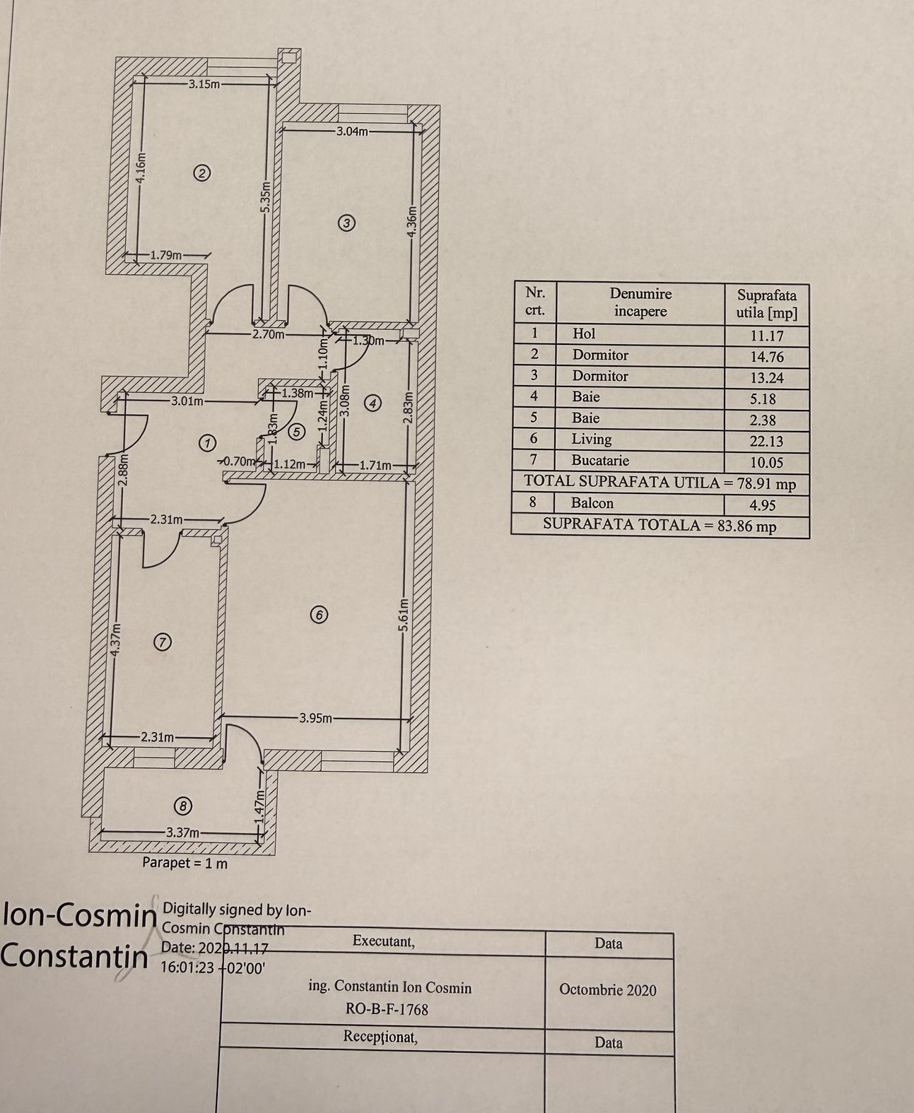 Cu o suprafata totala de 83.86 mp (inclusiv balcon de 4.95 mp), locuinta ofera un spatiu generos si bine compartimentat, potrivit atat pentru locuire proprie, cat si pentru investitie.