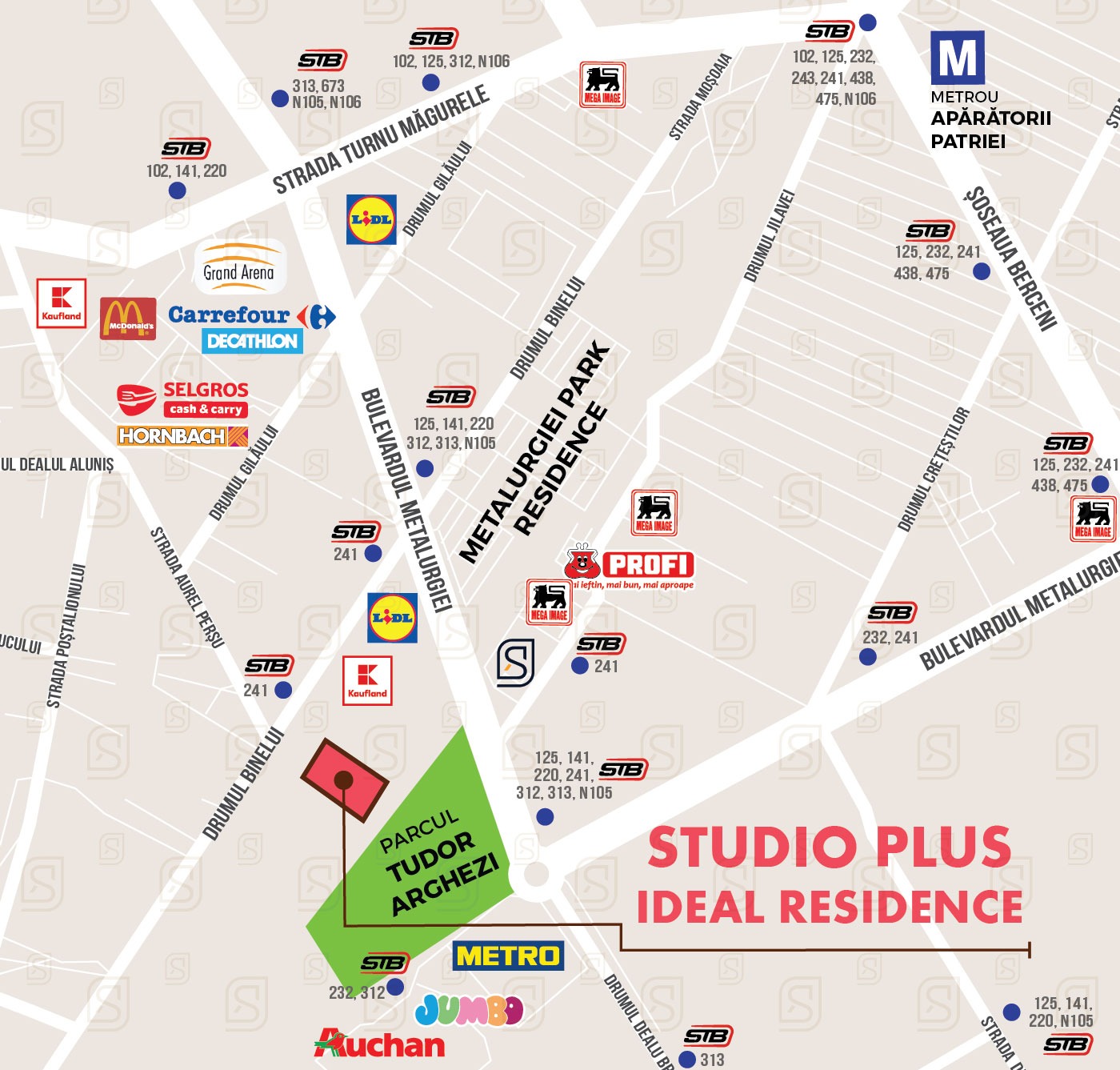 Accesul catre ansamblul rezidential Studio Plus Ideal Residence este facil, realizandu-se atat din Bulevardul Metalurgiei, cat si din Strada Drumul Binelui, prin artere de circulatie ample, care asigura conexiuni rapide catre zonele centrale ale Bucurestiului.