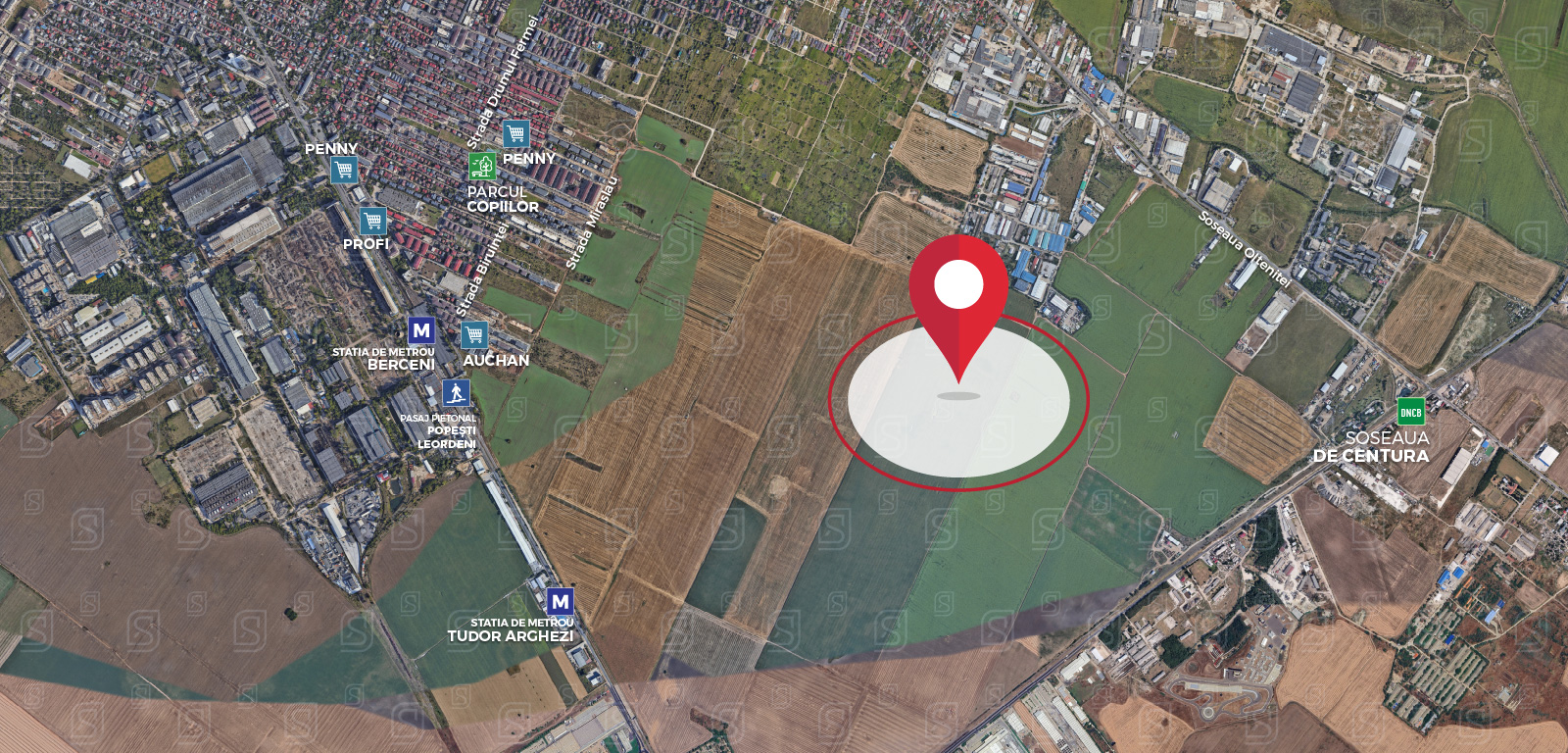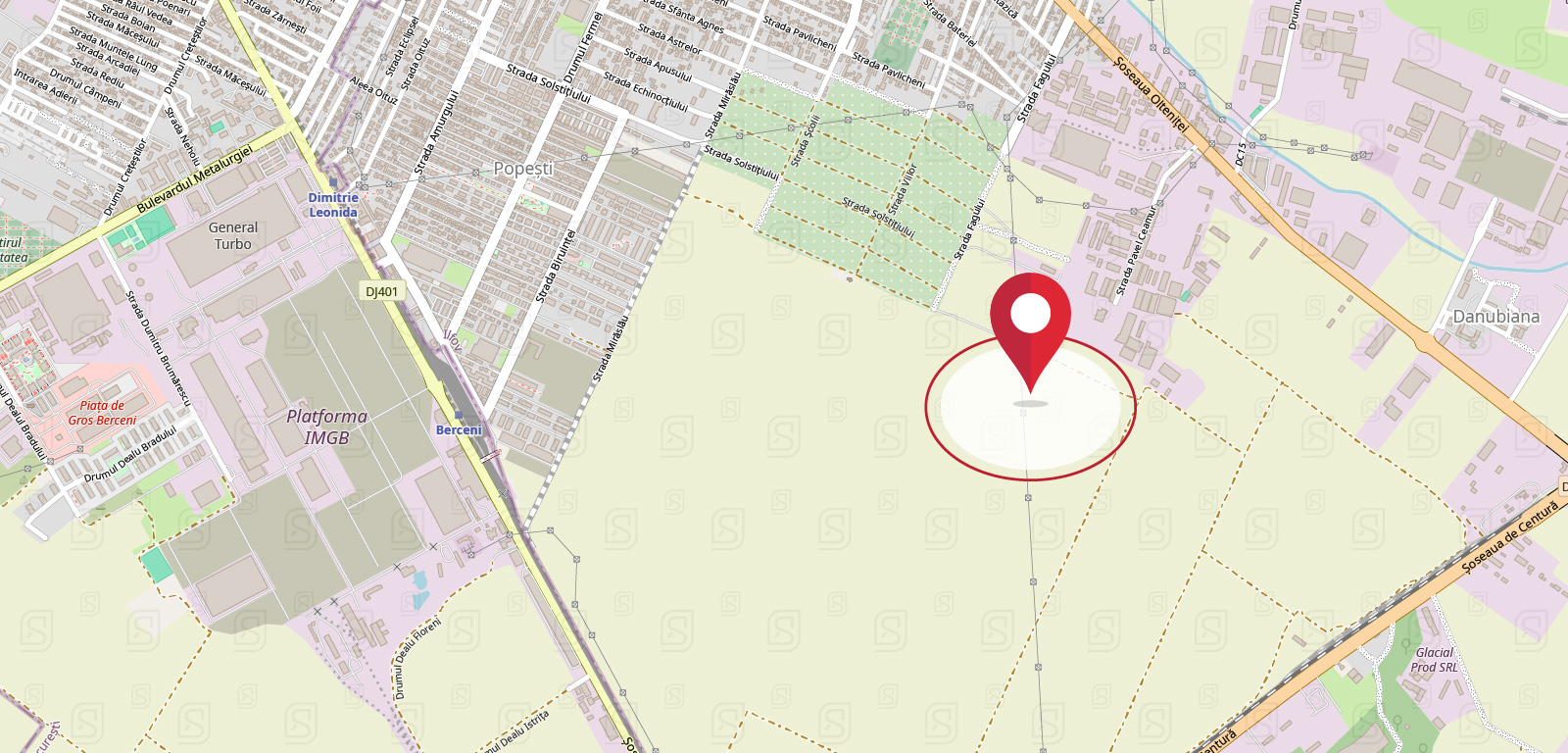 Terenul este situat intr-o zona excelenta, intre Soseaua Oltenitei si Soseaua Berceni, doua magistrale rutiere care asigura conexiuni rapide cu Bucurestiul si cu principalele puncte de interes din sudul Capitalei. Aceasta pozitionare privilegiata ofera acces imediat catre infrastructura rutiera majora: