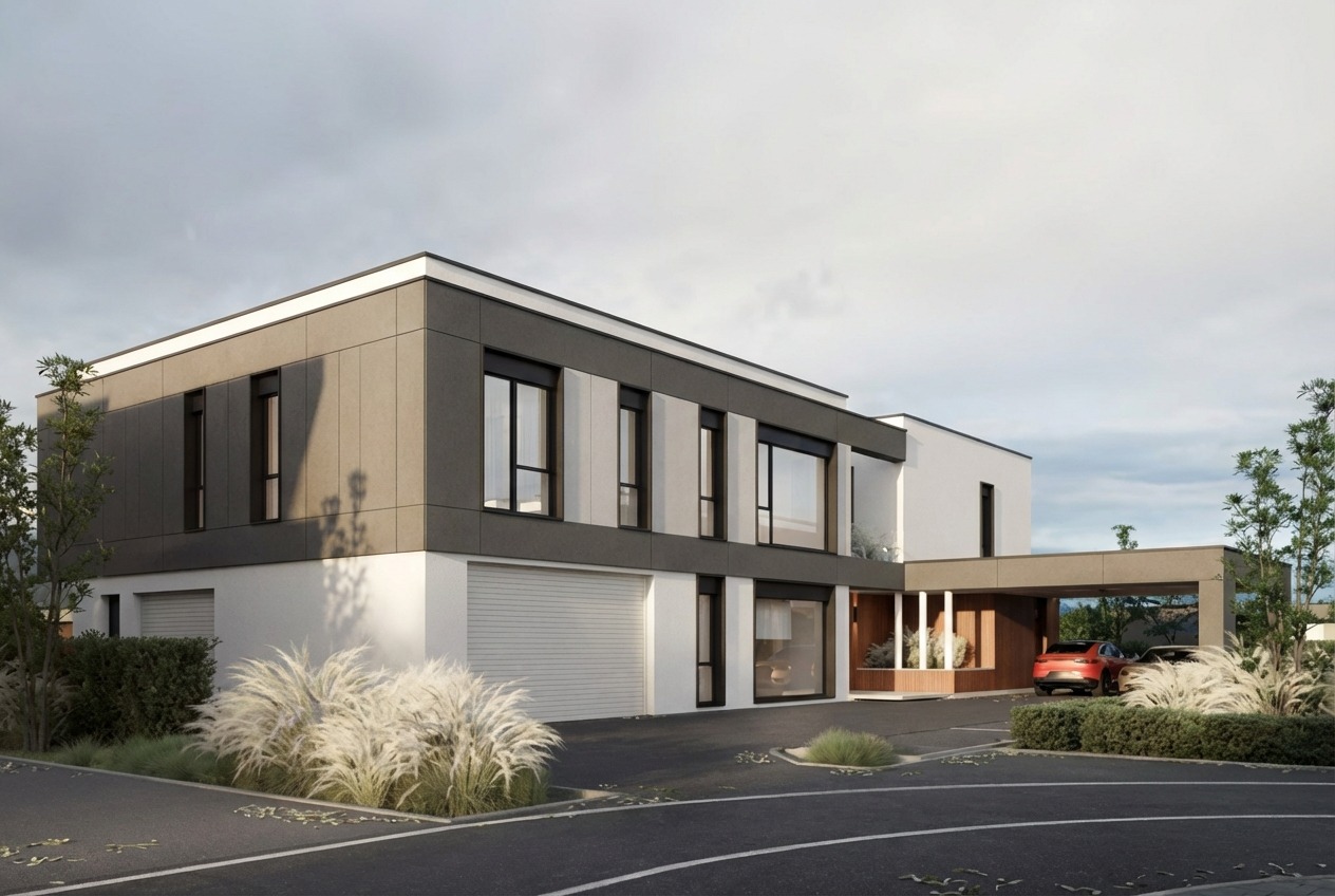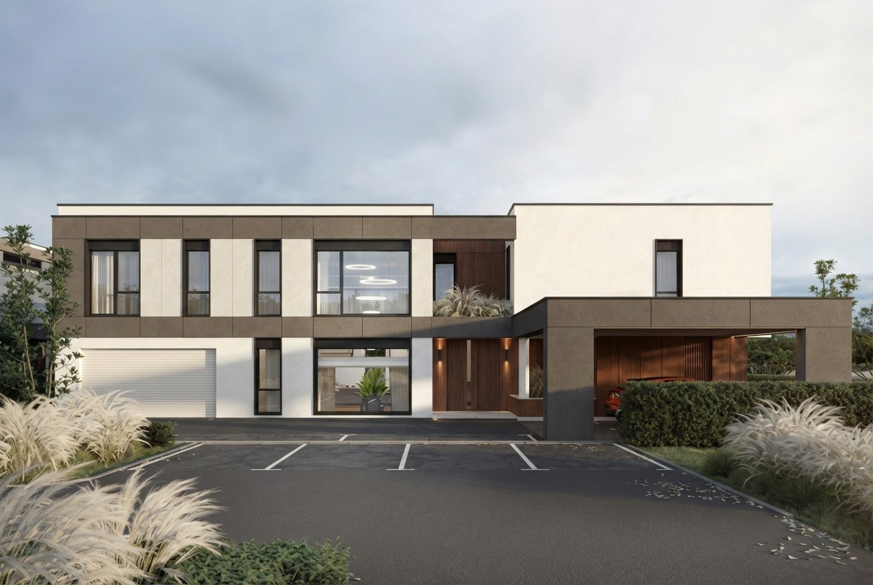 Proprietatea impresioneaza prin volumetrie echilibrata, linii curate si suprafete vitrate ample orientate catre lac.