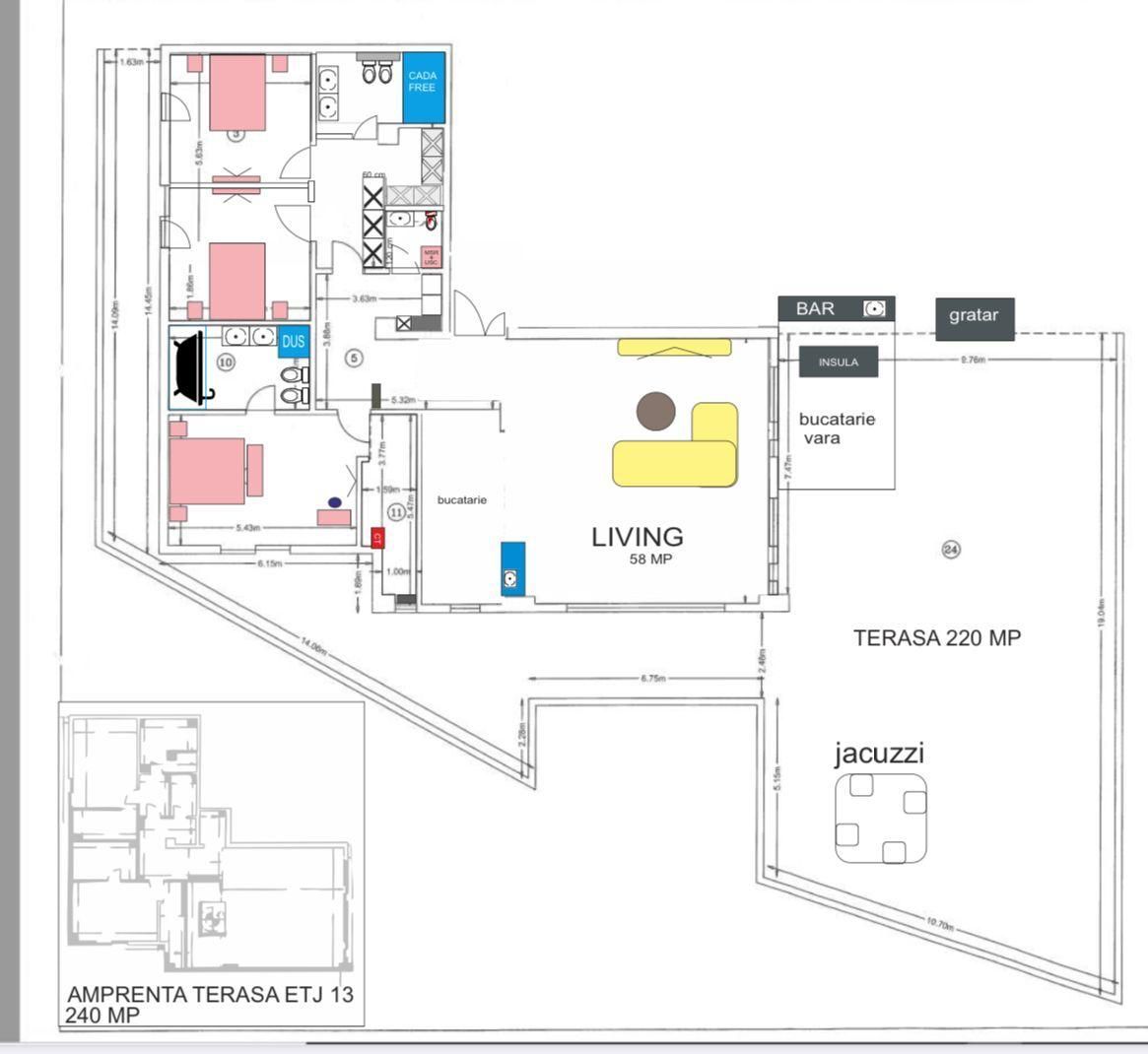 Penthouse exclusivist spre inchiriere – 4 camere, 670 mp total utili, terase 460 mp, vedere panoramica 360° | Unirii – Alba Iulia – Bucuresti Mall