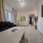 Apartamentul este la prima inchiriere, fiind mobilat si utilat modern, cu finisaje de calitate superioara si electrocasnice performante. Confortul termic este asigurat prin centrala proprie, apartamentul fiind contorizat individual, iar in zona de living este instalata o unitate de aer conditionat.
