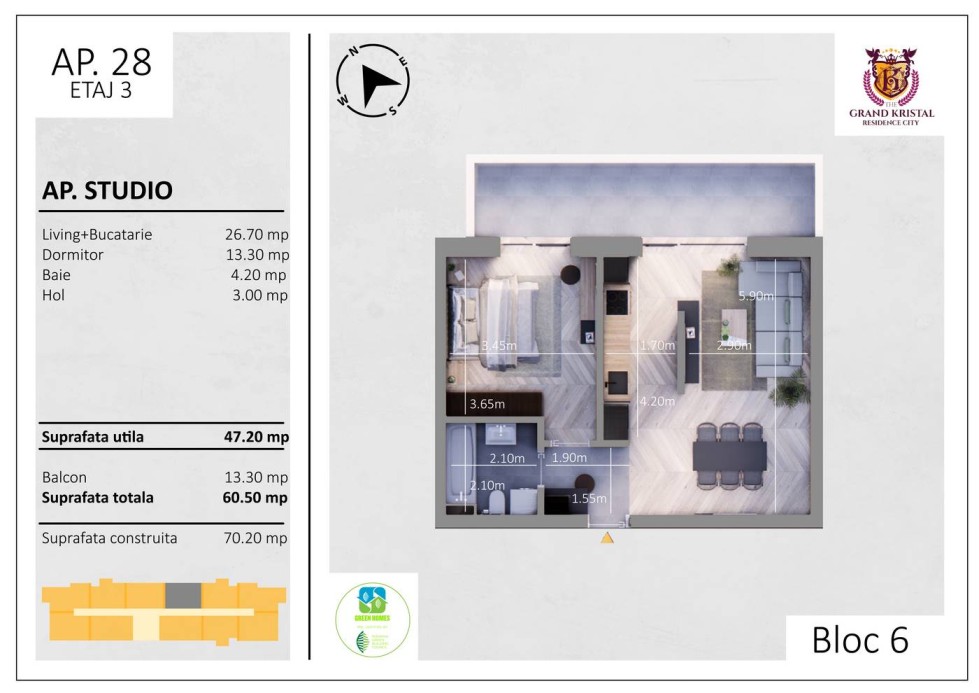 Aceasta proprietate imbina echilibrat confortul interior, pozitionarea avantajoasa si facilitatile urbane esentiale, fiind potrivita pentru inchiriere pe termen lung.