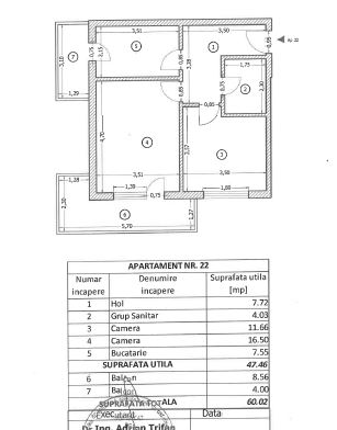 Cu o suprafata totala de 60.02 mp, apartamentul impresioneaza prin compartimentarea inteligenta si spatiile bine gandite.
