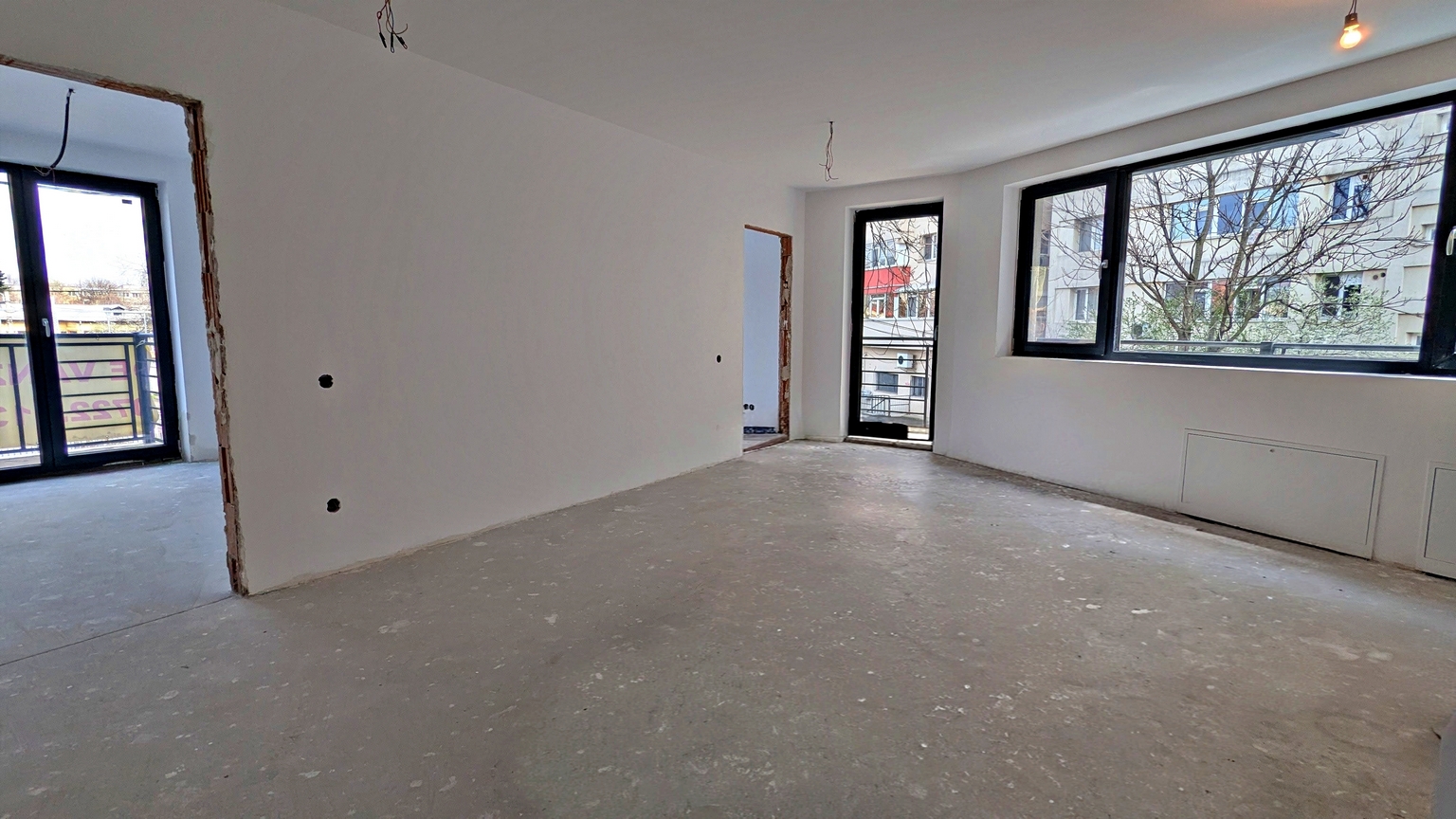 Configuratie de tip apartament: living + bucatarie, 2 dormitoare, baie, hol, zona de dining si 3 balcoane – spatiu luminos si bine organizat.