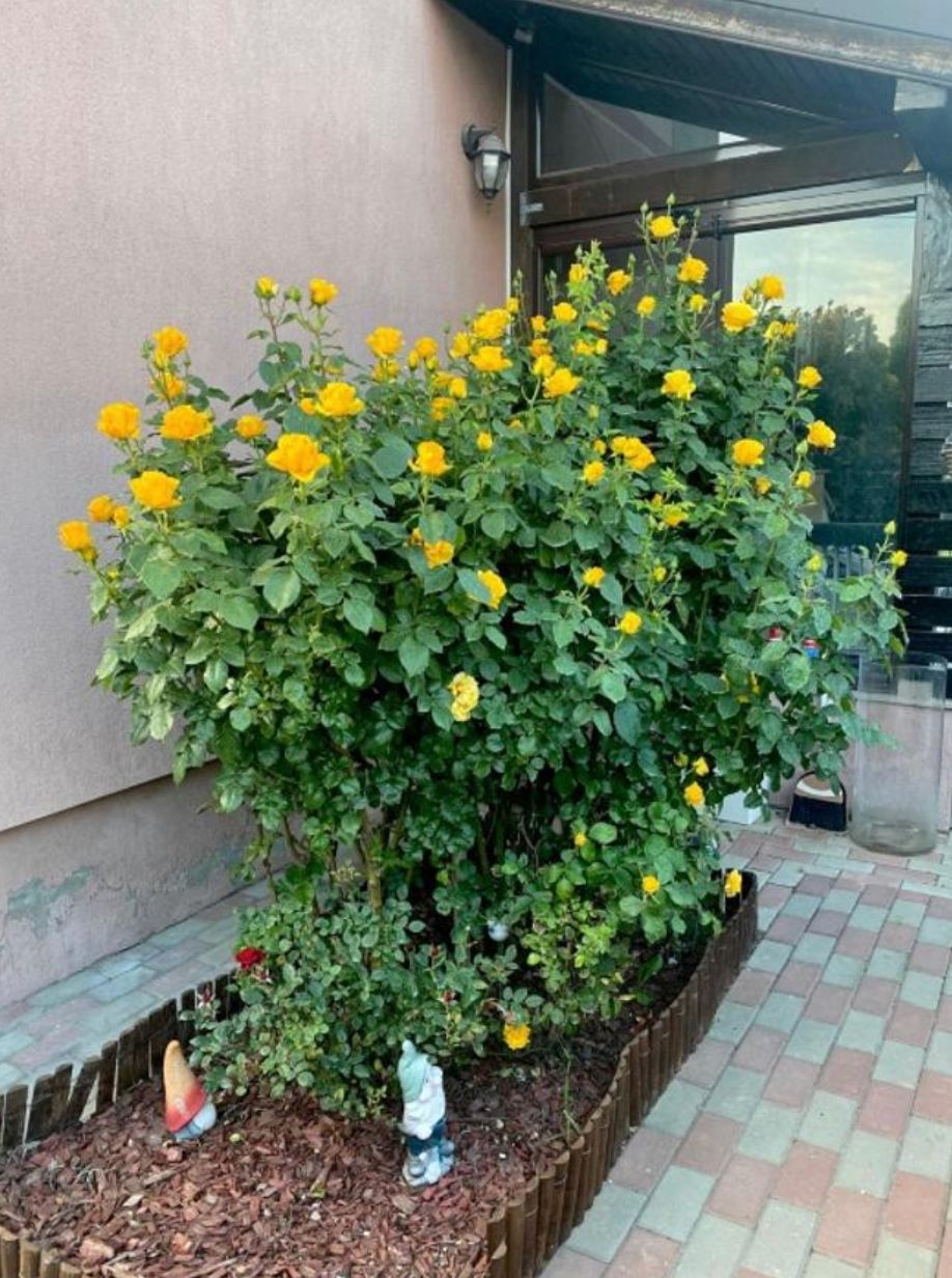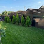 Gazon cu sistem de irigare automat, arbori tuia pentru intimitate si plante ornamentale (liliac, lavanda, magnolii).
