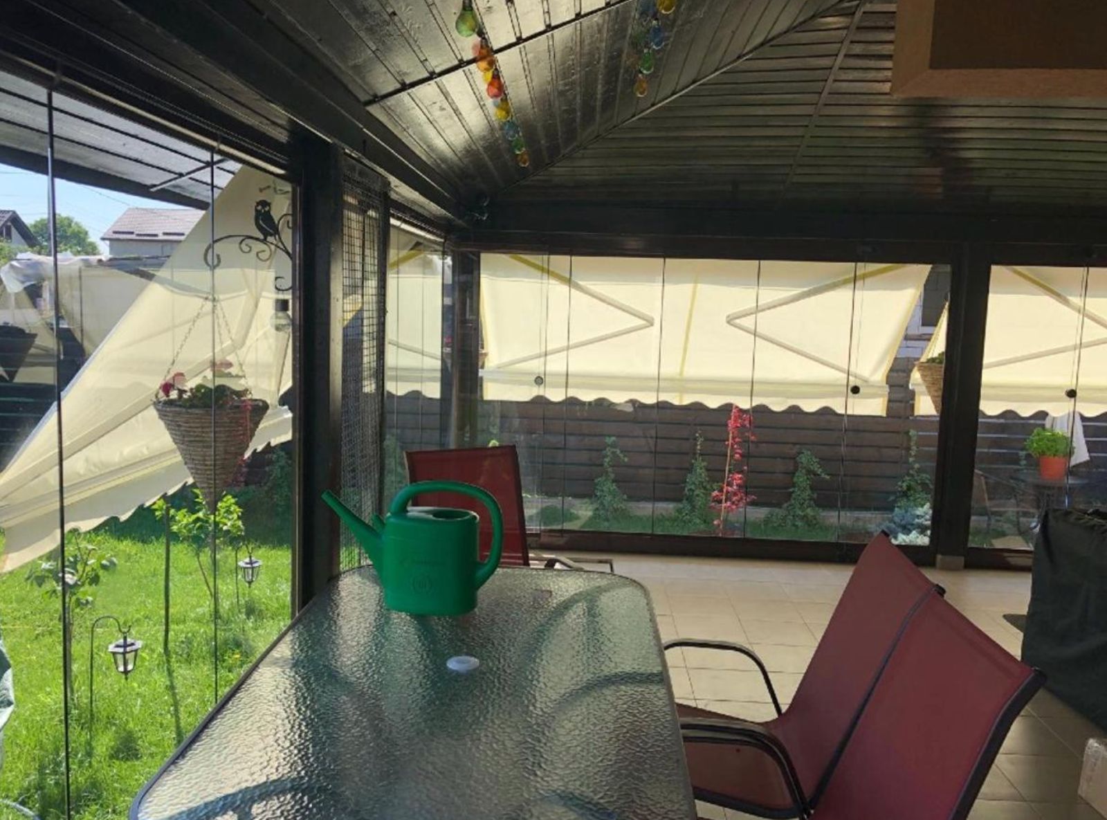 Terasa parter acoperita si inchisa cu geam securizat, dotata cu aer conditionat – ideala pentru utilizare in orice sezon.