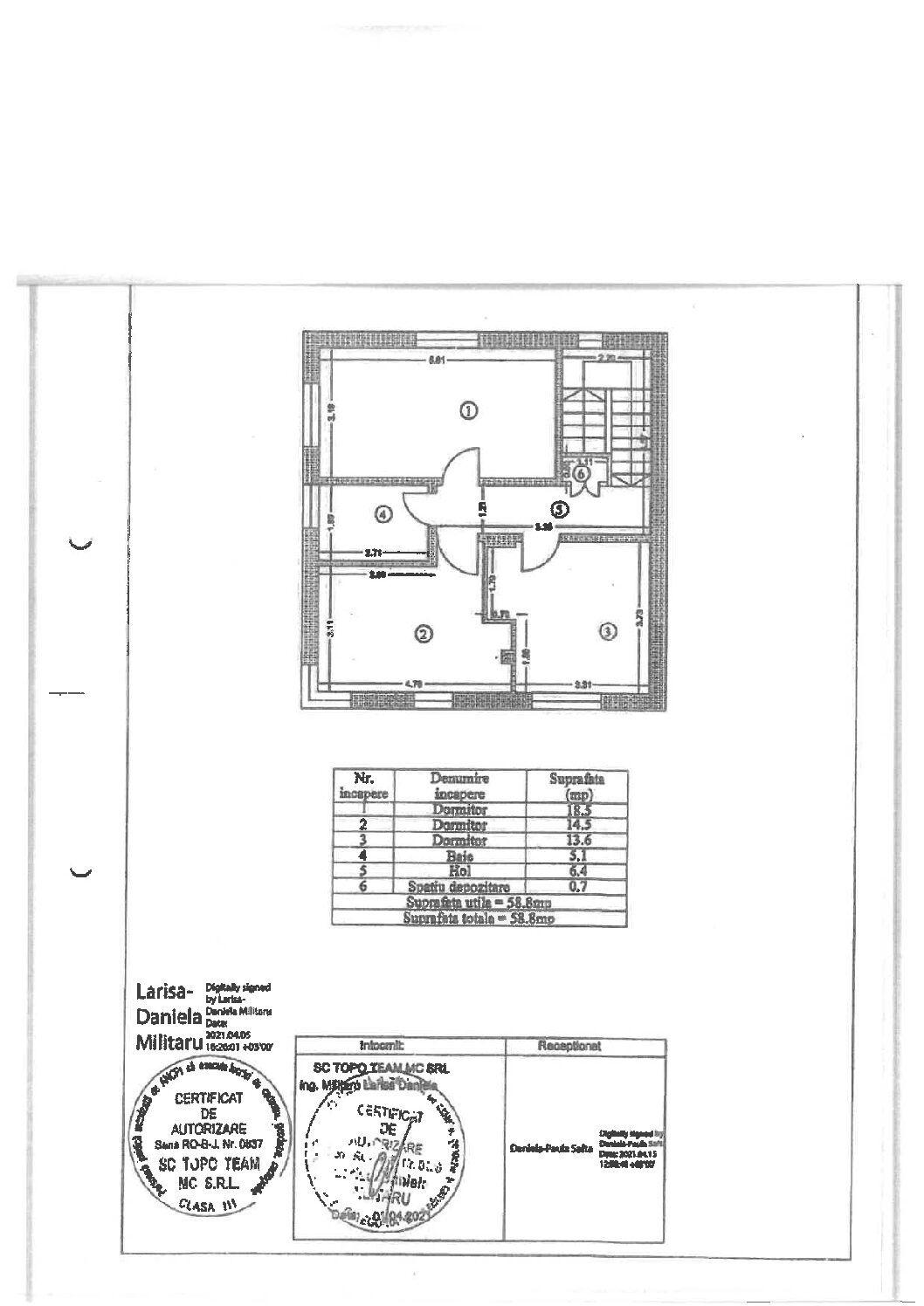 Etaj: 3 dormitoare confortabile (12.54 mp, 12.54 mp si 9.87 mp), baie cu cada, hol