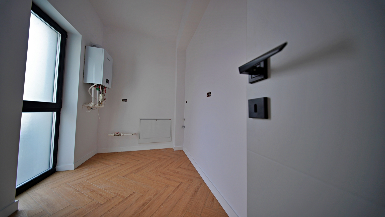Living + dining + bucatarie open space 37.80 mp , baie de serviciu 2.35 mp, hol – 5.95 mp, vestibul 3.45 mp, camera tehnica / spatiu depozitare 6.20 mp